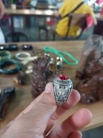 Nhẫn bạc đính viên đá màu đỏ, mài giác. Ni 20.5mm Phom to dày chắc chắn. Bên trong khắc Ba