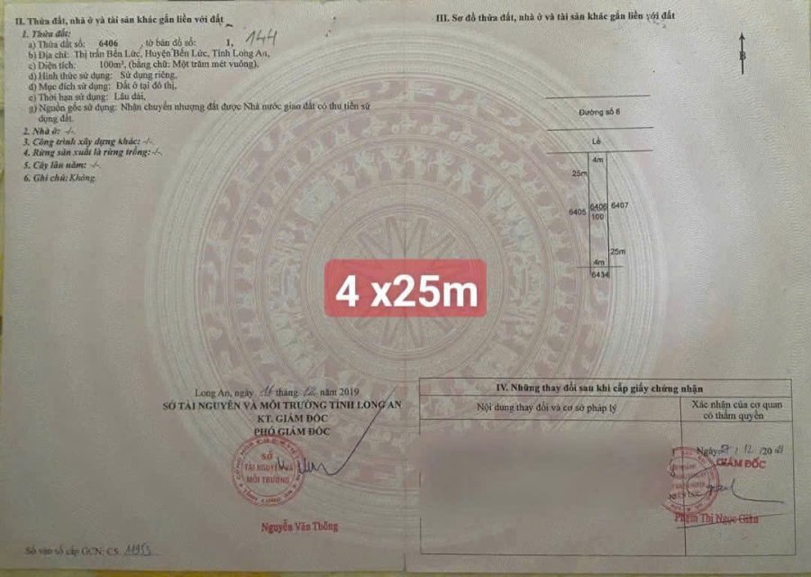Bán đất thổ cư mặt tiền tỉnh lộ 835C , xã Phước Vân , Cần Đước dt 226m2 giá 3,2 tỷ
