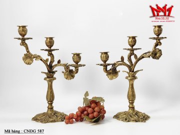 Cặp chân nến bằng đồng tinh xảo, thiết kế mỗi chân nến có ba nhánh với các chi tiết trang