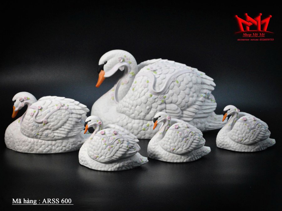 Bộ tượng thiên nga trắng làm bằng sành sứ nét đẹp tinh khiết