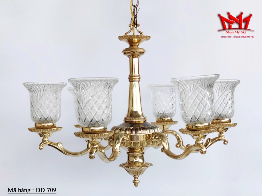 Chiếc đèn chùm treo trần bằng kim loại chụp thuỷ tinh sang trọng