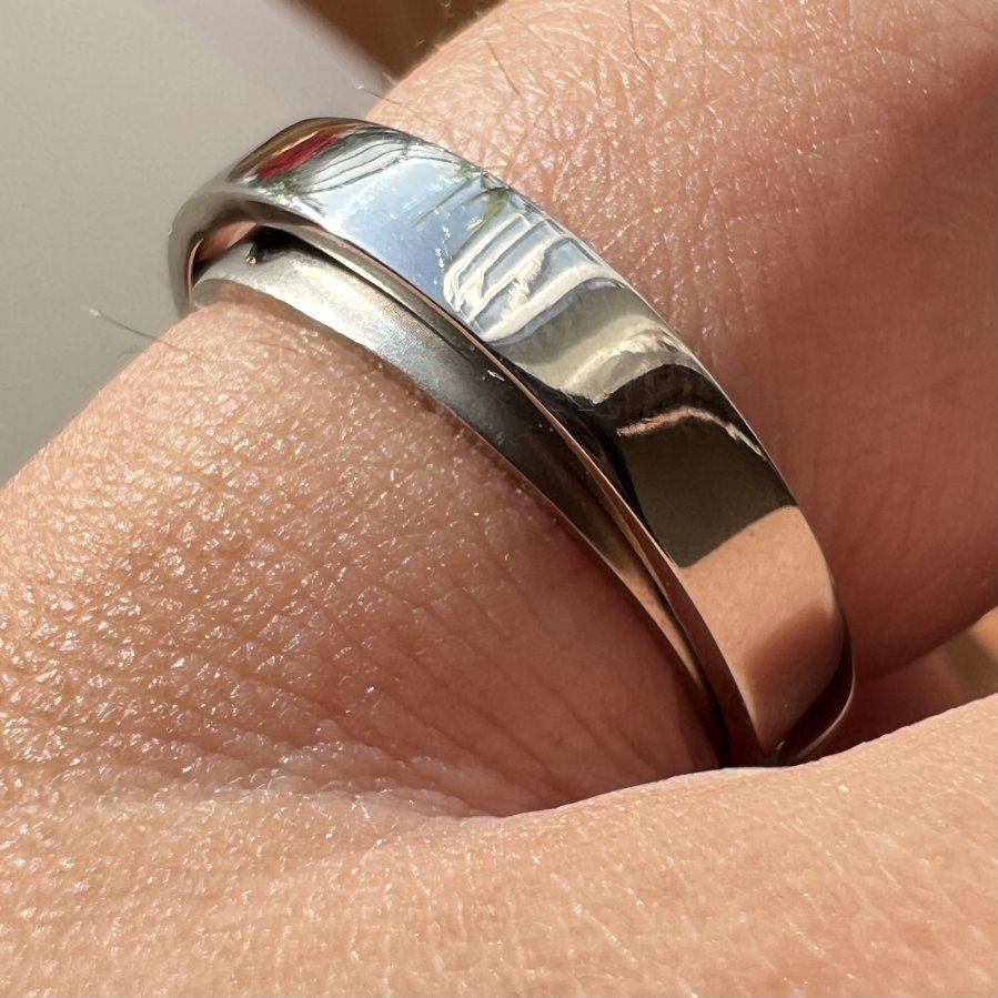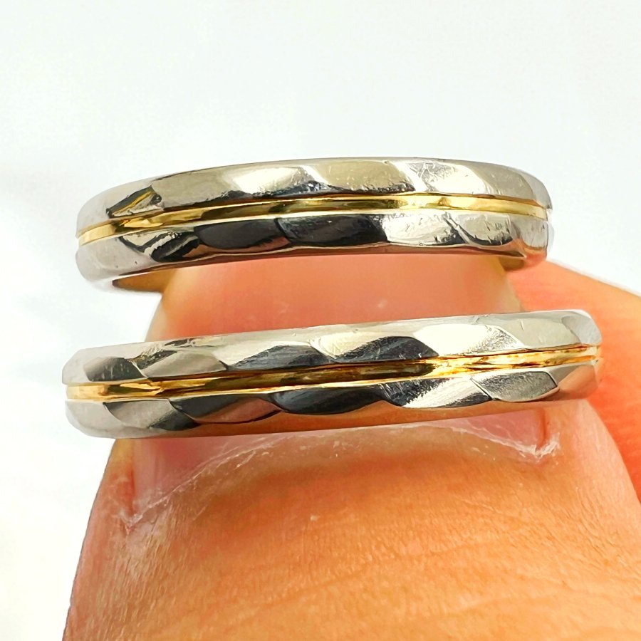 Cặp nhẫn bạch kim pt900 ốp vàng 18k Nhật phôm tròn hoa văn rất đẹp, size 16mm và 18mm - bả