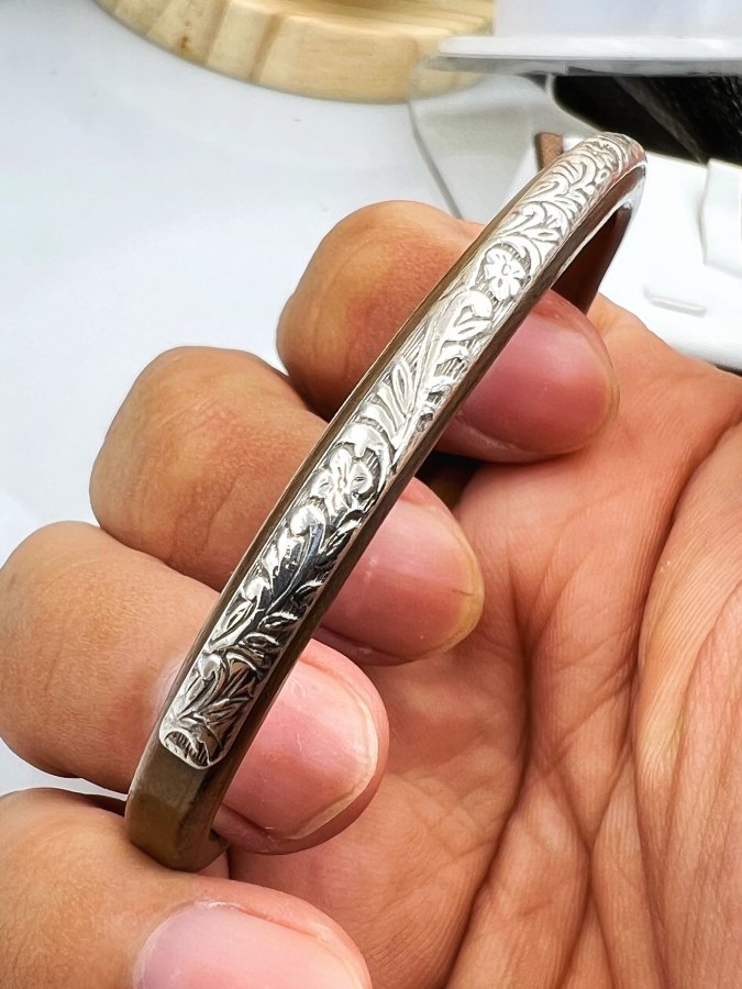 Vòng bạc 925 và đồng đỏ hiệu Skyking hoa văn khắc thủ công sắc nét rất đẹp, size 62mm (tăn