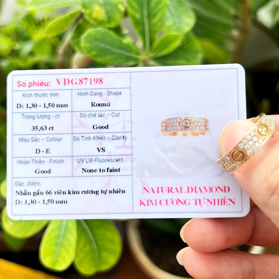 Nhẫn Carti.er HK vàng hồng 18k mới tinh hoa văn sắc nét đính 66v soàn thiên nhiên 1.3-1.5l