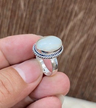 Nhẫn bạc đúc, mặt mã não, kiểu vintage, viền khía, lên nước cực sang
