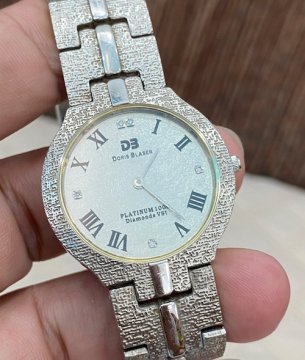 Doris Blaser - Đồng hồ Nữ, mạ vàng trắng, mặt đính KC tấm, form cực sang