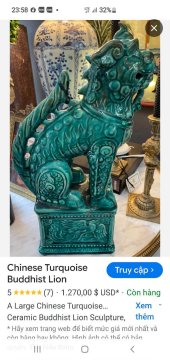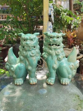 Cặp Lân 1 sừng gốm Lái Thiêu cũ.Cao 80cm*34cm*26cm( kèm ảnh sàn tmđt cho khách tham khảo gi