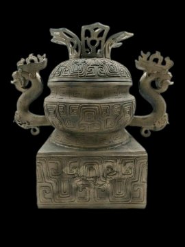 Thống tứ phương tôn hợp kim đồng,tai song long,nắp mão vua.Cao 39cm*45cm*24cm. Nặng 10kg.
