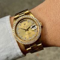 Rolex 5 số vỏ vàng đúc 18k full gold 18k mặt tia vàng cọc số kim cương zin hãng