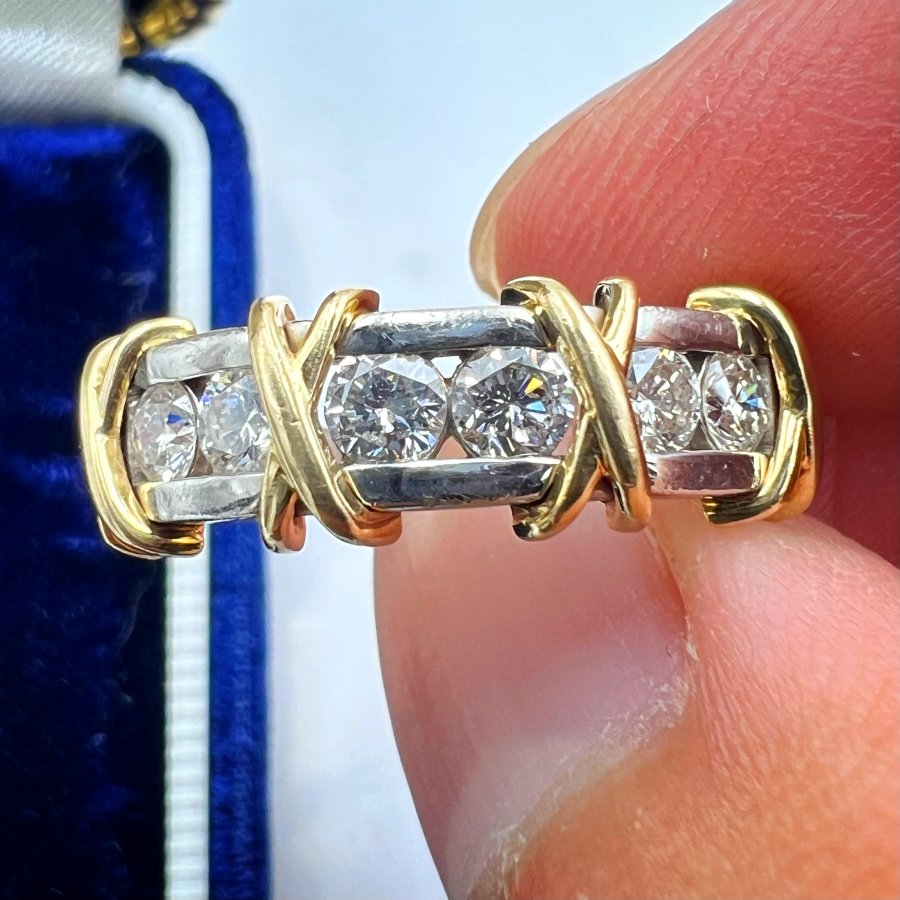 Nhẫn vàng 14k italy đemi 2 màu mới tinh hoa văn sắc nét đính full soàn thiên nhiên 1.6-18l