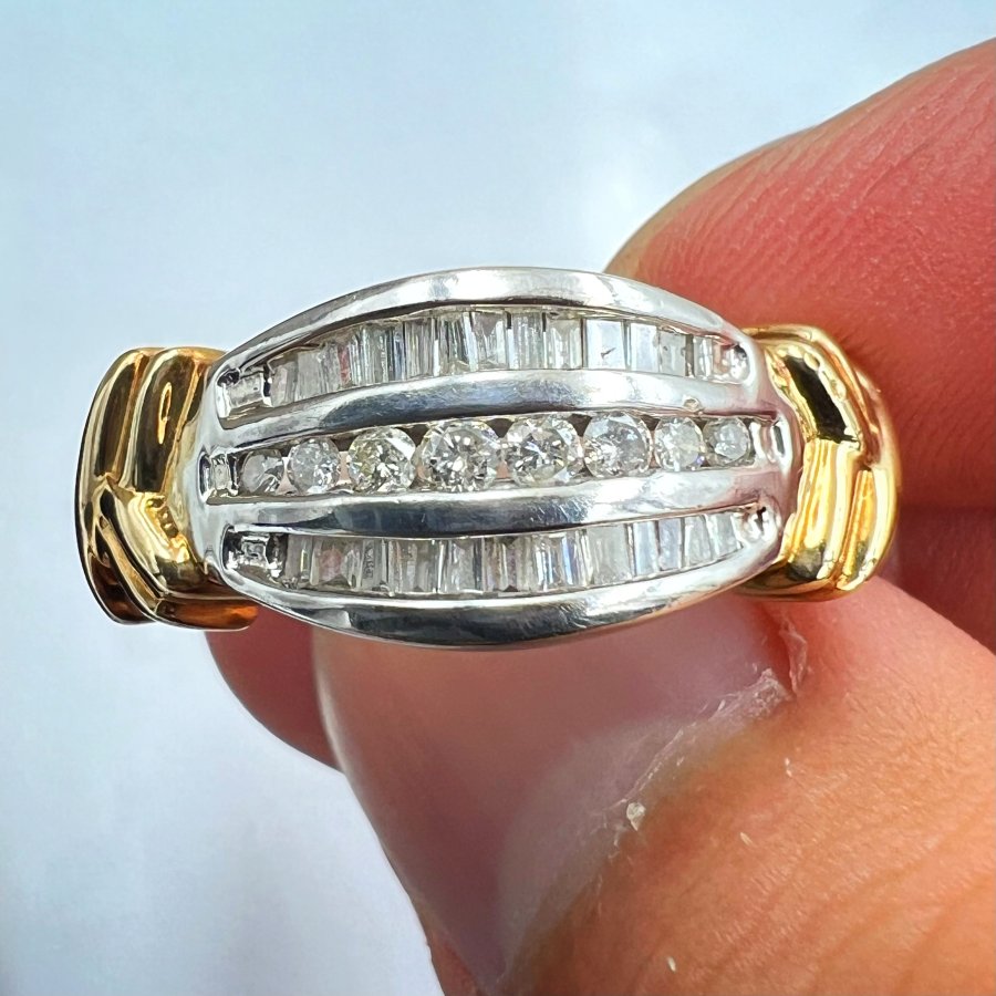 Nhẫn vàng 18k ốp bạch kim pt900 Nhật mới tinh hoa văn sắc nét đính 26v soàn thiên nhiên 1.