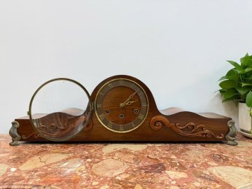 Đồng hồ để bàn Đức dáng vai bò cổ điển •Có ngắt chuông • Vỏ gỗ uốn lượn, hoa văn chạm nổi