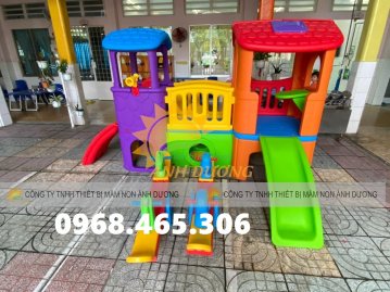 Bộ cầu trượt xích đu trẻ em liên hoàn, cầu trượt khu vui chơi trẻ em