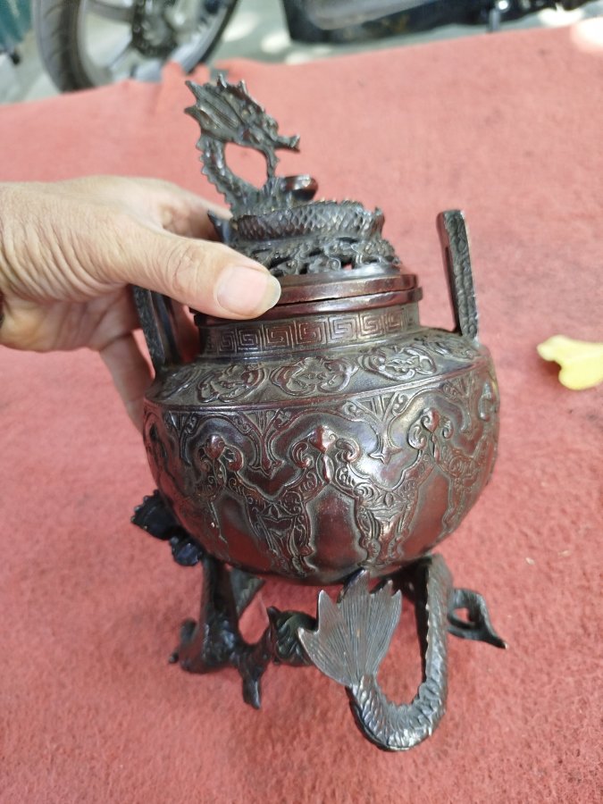 Giao lưu điếu bát bằng đồng trạm hoa văn lân mã đẹp độc lạ đt 0983491274