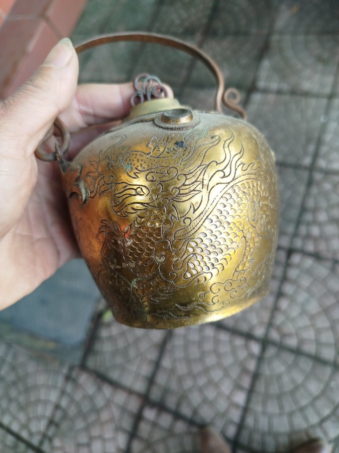 Giao lưu ấm đồng tay ngang cổ hoa văn đẹp đt 0983491274