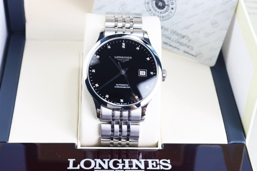 Longines Record L2.821.4.57.6 Chronometer Automatic Diamond Size 40mm Fullbox.
