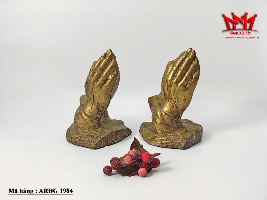 Chặn sách hình bằng tay cầu nguyện bằng đồng