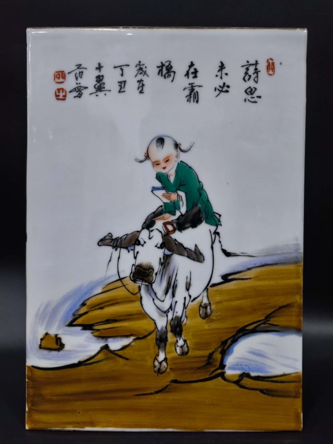 Tranh sứ Mục đồng chăn trâu . 36x25cm