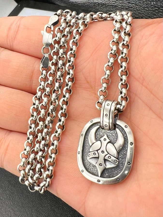 Bộ dây chuyền và mặt bạc 925 hiệu Wolf Man BRS hoa văn sắc nét rất đẹp, dây dài 60cm tròng