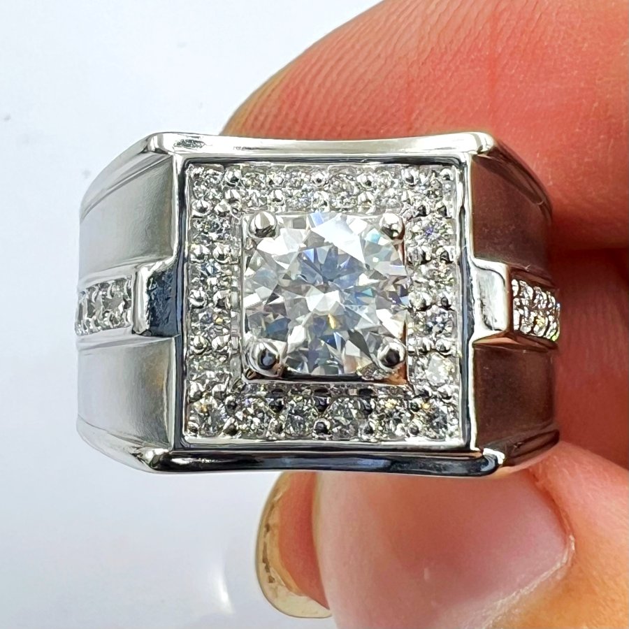 Nhẫn vàng trắng 14k mới tinh đính 30 viên soàn thiên nhiên 2li viên chủ moisanite 6.3li rấ