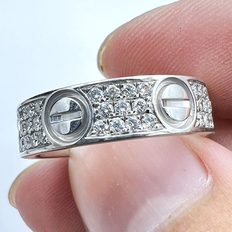 Nhẫn Carti.er HK vàng trắng 18k mới tinh đính 66v soàn thiên nhiên 1.4li rất đẹp, size 18m