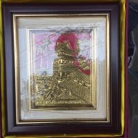 Đĩa phù điêu Chùa Keo Thái Bình***, chất liệu hợp kim đồng vàng, mới nguyên hộp, ***kích thước