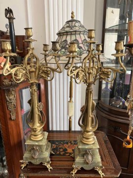 Cặp chân nến Pháp xưa. Chất liệu đá cẩm thạch và atimol. Cao 71cm. Ngang 16cm. Nặng