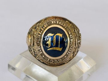 Kính phố vàng 10k. Trường công giáo xưa 1936 ***** lõm. Hột xanh giác rất lửa. Size:19