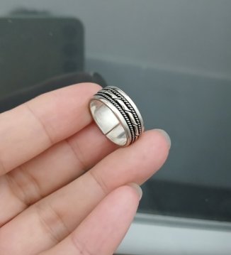 Nhẫn xoay ngón cái, hợp kim bạc tây tạng, mặt trong khắc chữ, hoa văn tinh tế