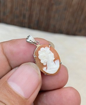 Mặt dây chuyền Cameo khung bạc nhỏ xinh cho Nữ