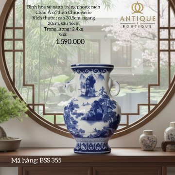 Bình gồm sứ xanh trắng phong cách cổ điển Chinoiserie