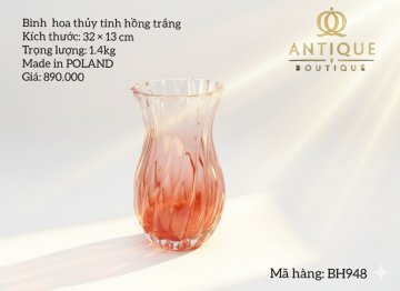Bình hoa thủy tinh màu hồng cam và trắng trong