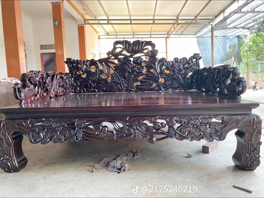 Giường sen vịt gỗ gụ kt 2m -1m60 tựa , tay liền khối dày 6cm hàng đục tay sắc nét kỹ thuật