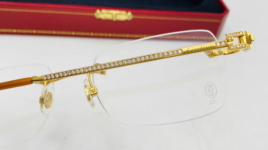 Kính Cartier Vàng đúc 18k đính Kim Cương zin hãng, Like new full box