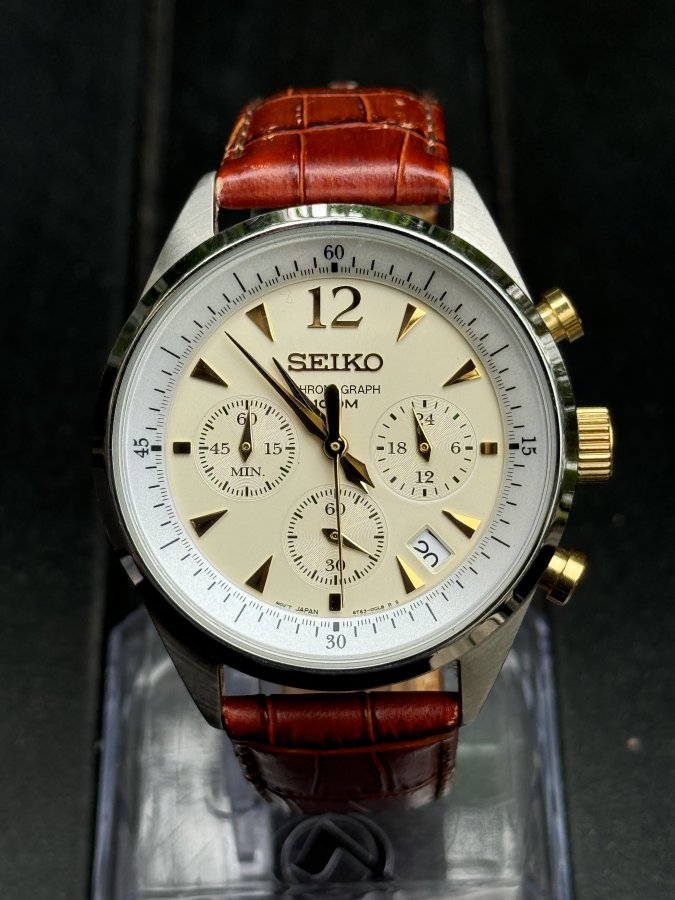 SEIKO Sports - Made JAPAN - xịn - Size: 41 chưa núm - máy Chronograph KIM TRÔI - Kính th