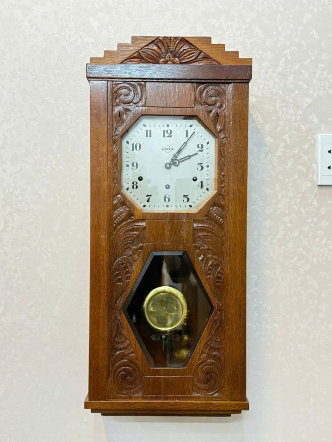 Đồng hồ treo vedette Pháp xưa - Dáng thùng dài đuôi chuột cổ điển: vỏ gỗ ốp veneer