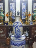 Lọ tàu gốm sứ xanh trắng xưa. Họa tiết "Bát tiên du xuân". Lành toàn hảo cao 50.5cm