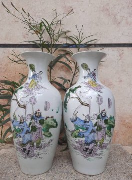 Cặp gốm sứ tàu màu hoạ tiết " Giang Tả Cầu Hôn "