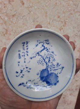 Đĩa gốm sứ xanh trắng xưa họa tiết vẽ Hoa ĐK: 11.2cm