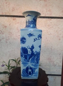 Lọ tàu gốm sứ xanh trắng xưa. Họa tiết "Bát tiên du xuân". Lành toàn hảo cao 50.5cm