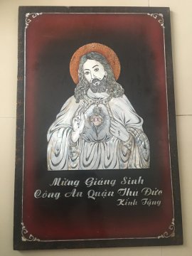 1350. Tranh sơn mài khảm trai Đức Chúa, CA Quận. Thủ Đức Kính Tặng.