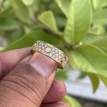 Nhẫn Catier hồng kông vàng đúc 18k 750 đính 60 viên kim cương 1ly5 & 6 viên 2ly2