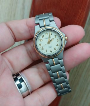 Đồng hồ Nữ hàng hiệu Aureole, dây vỏ titan chỉ vàng siêu bền đẹp