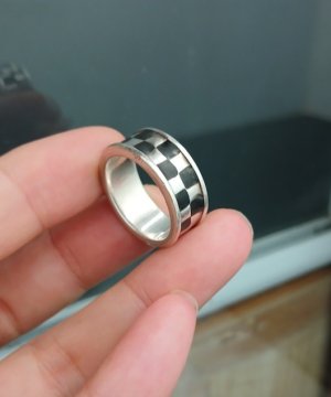 Nhẫn bạc ngoại dày dặn, ô trắng đen,phù hợp Nam/ Nữ, lên tay rất sang