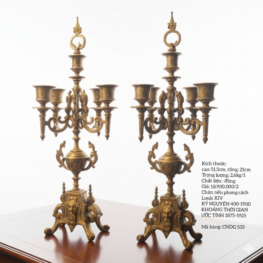 Đôi chân đèn nến bằng đồng Thương hiệu Louis XIV kỷ nguyên 1400 - 1900