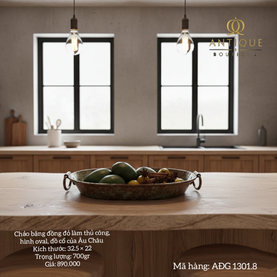 Chảo đồng đỏ được gò thủ công đồ cổ của Âu Châu