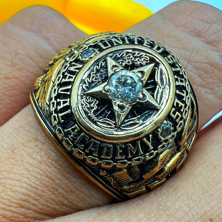 Nhẫn vàng 14k U.S Naval Academy năm 2002 mới cứng phôm bự hoa văn sắc nét ổ ngôi sao đính