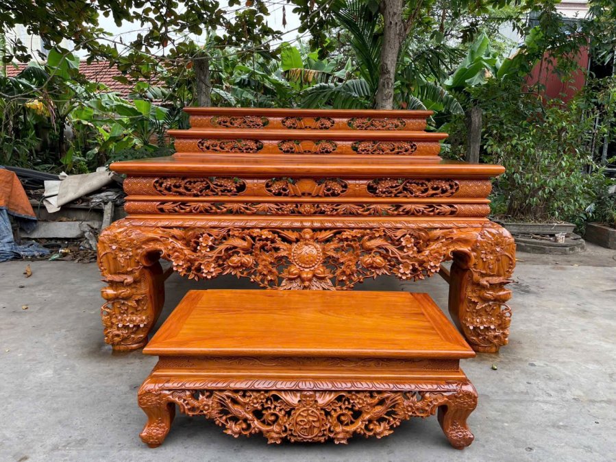 Sập thờ hoa mai gỗ gụ chân 24 gỗ gụ kt 217-127-107