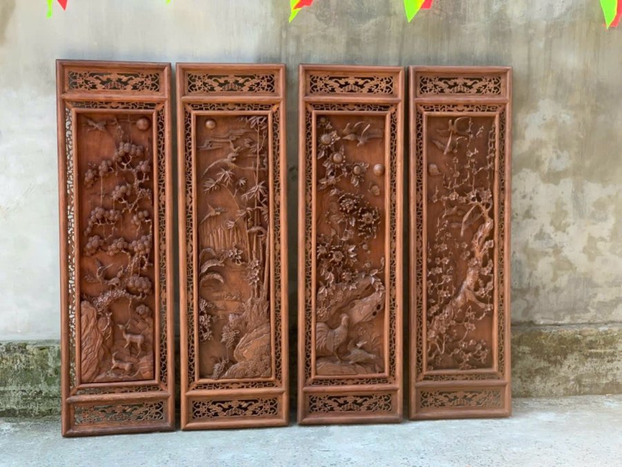 Tranh tứ quý bốn mùa đục chạm kênh bong