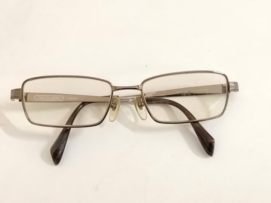 Gọng kính titanium màu vàng đồng nhạt thương hiệu Trussardi.